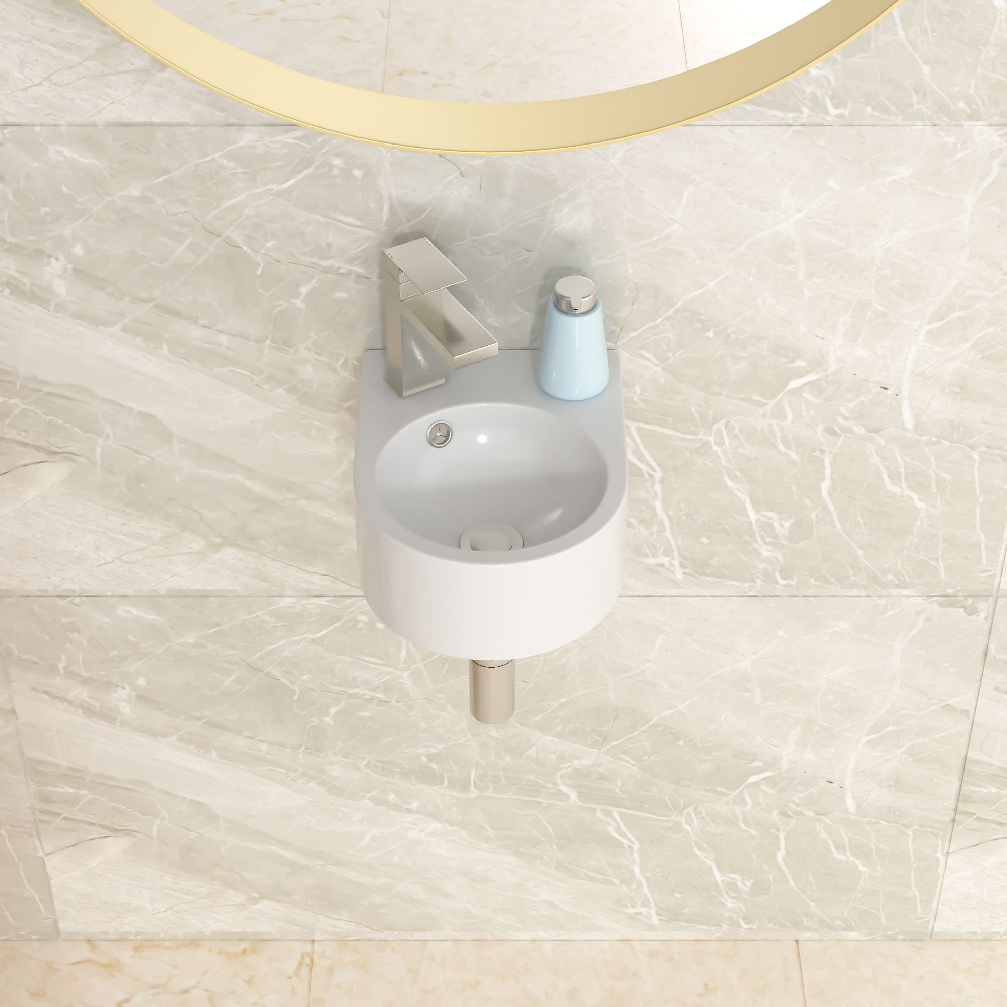 Home > Wall Mount Single Bowl Ceramic Bathroom Sink, White Wall Hung Porcelain Vessel Sink, Floating Lavatory Vanity Basin with Faucet Hole and Overflow