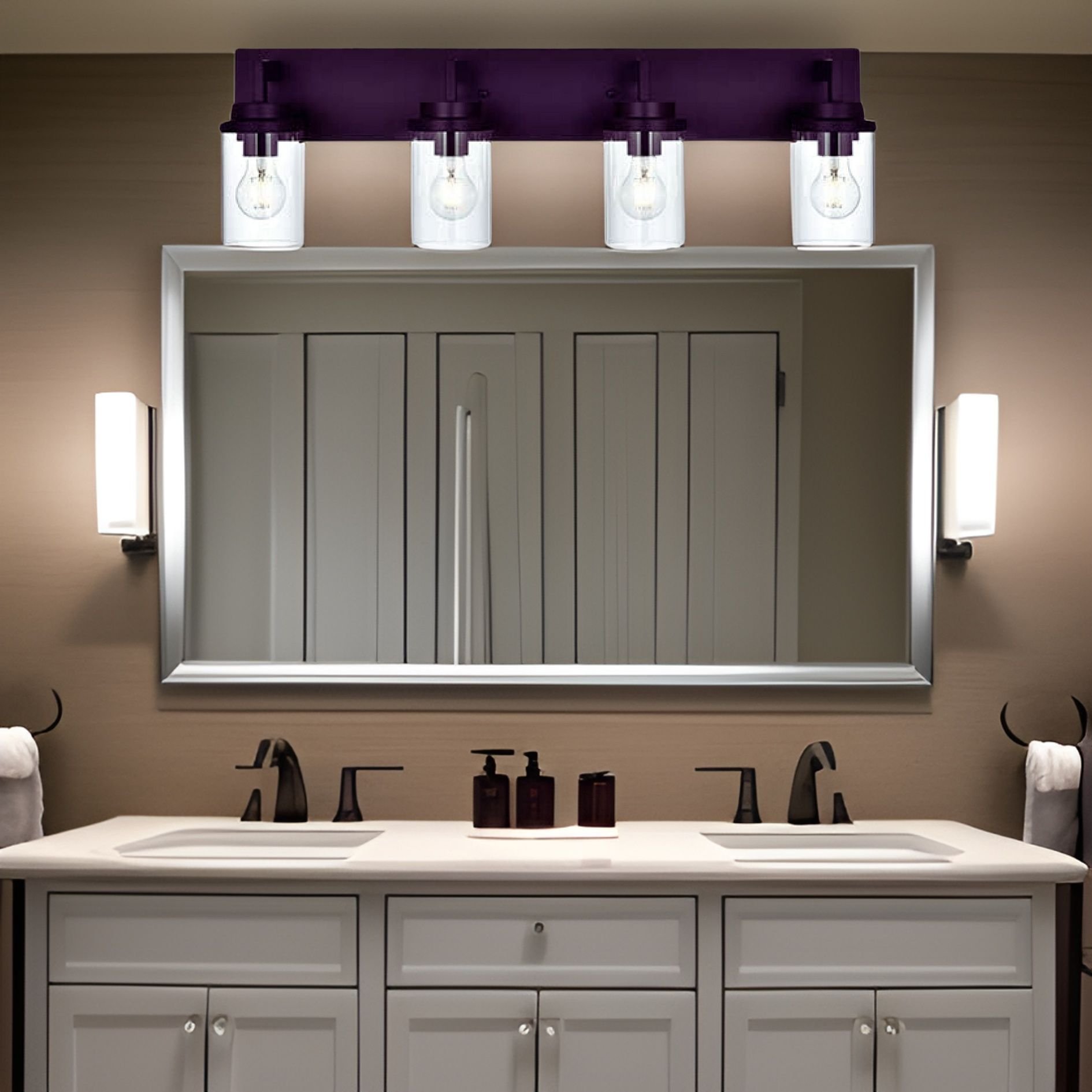 Unique Design:Featuring a robust metal rectangular backplate in an oil-rubbed bronze finish and transparent cylindrical glass shades, this fixture boasts a classic and elegant appearance. The modern and retro design emits warm light, creating a rustic farmhouse ambiance for your house.