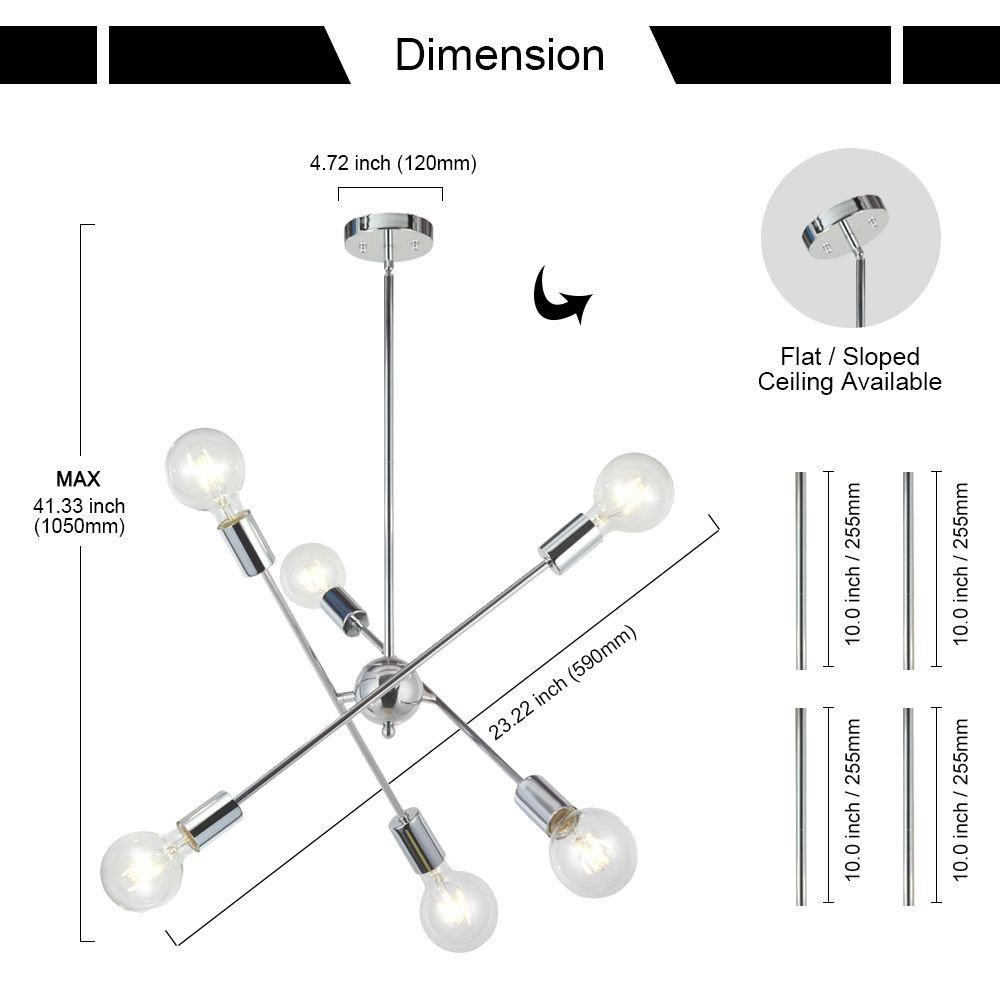 2.Modern Design with adjustable arms, 6-light chandelier lighting inspired by Sputnik style fixtures. It's the perfect light fixture to install in kitchen, dining room, living room, foyers.