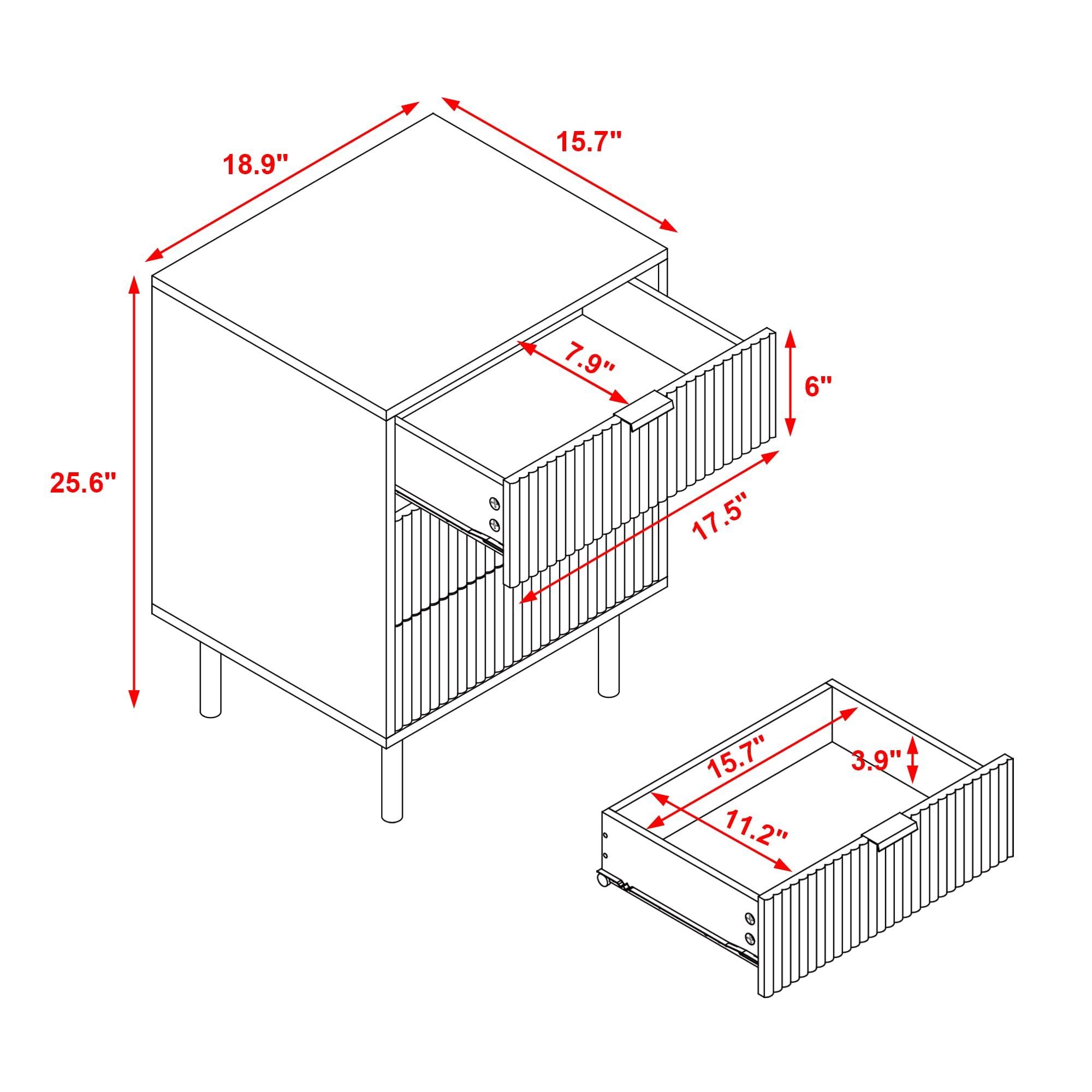 2.Storage Space: The drawers are generously sized at approximately 15.7" x 11.8", providing ample space for A4 or legal-size files. This versatile nightstand aids in maintaining a clutter-free environment. Its top surface serves as a convenient spot for essentials like an alarm clock, phone, charger, or eyeglasses, keeping them easily accessible.